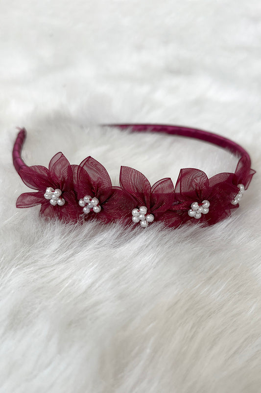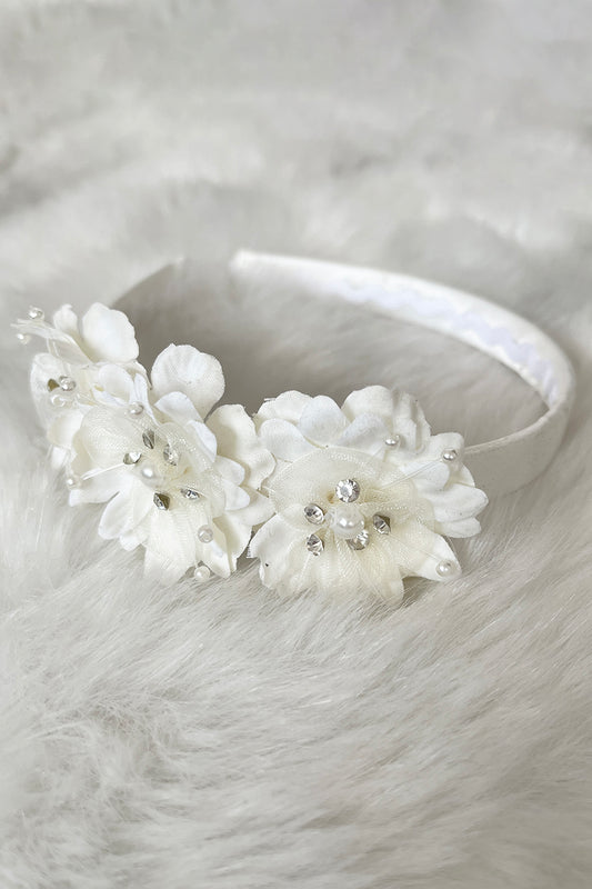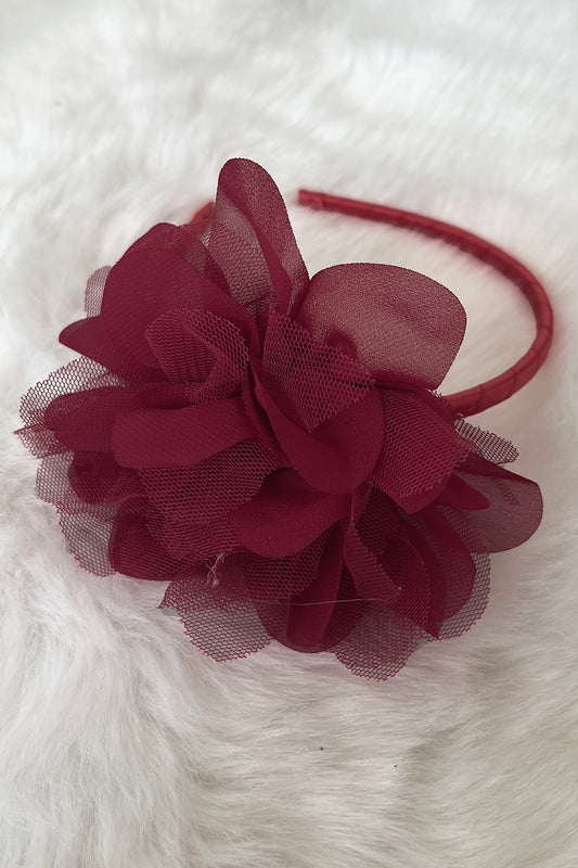 HB022 Satin Headband with Organza Bow & Satin Flower