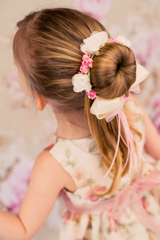 HB022 Satin Headband with Organza Bow & Satin Flower