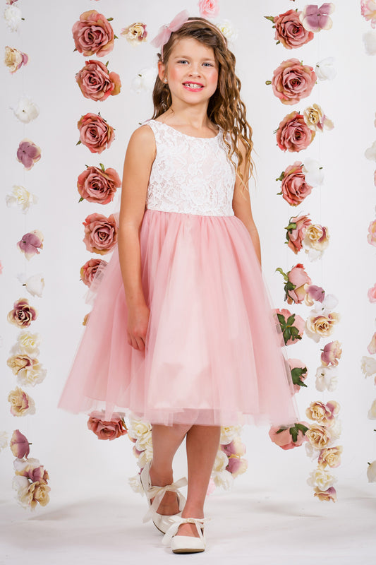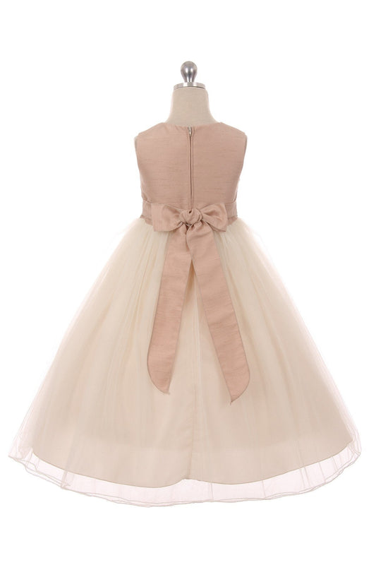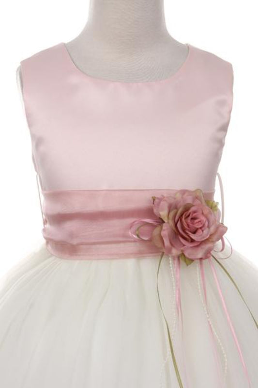 428 Vintage Rose Poly Silk Tulle Girls Dress with Plus Sizes