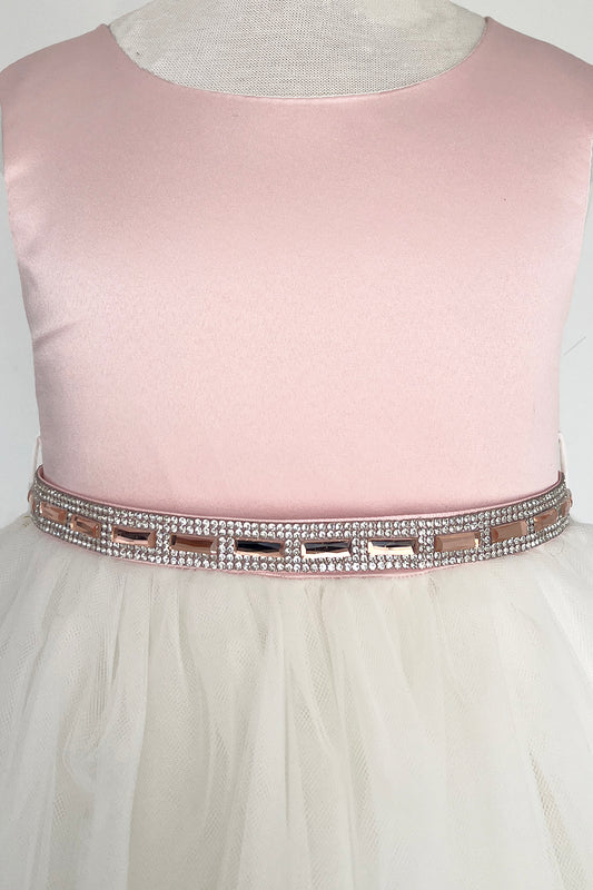 411P Pink & Rose Gold Rhinestone Satin & Tulle Girls Dress