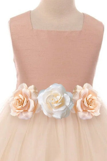 219-F Shantung Poly Silk Baby Dress Decorated with Flower Petals