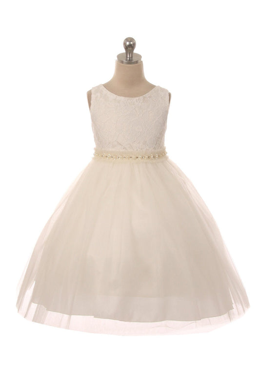 456-C Lace Illusion Girls Dress with Thick Pearl Trim