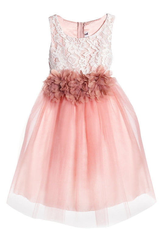 414F Lace Illusion Girls Dress with 3 Mesh Flowers