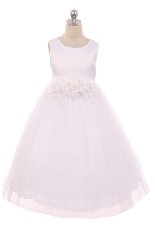 411-F White Satin & Tulle 3 Flower Girls Dress