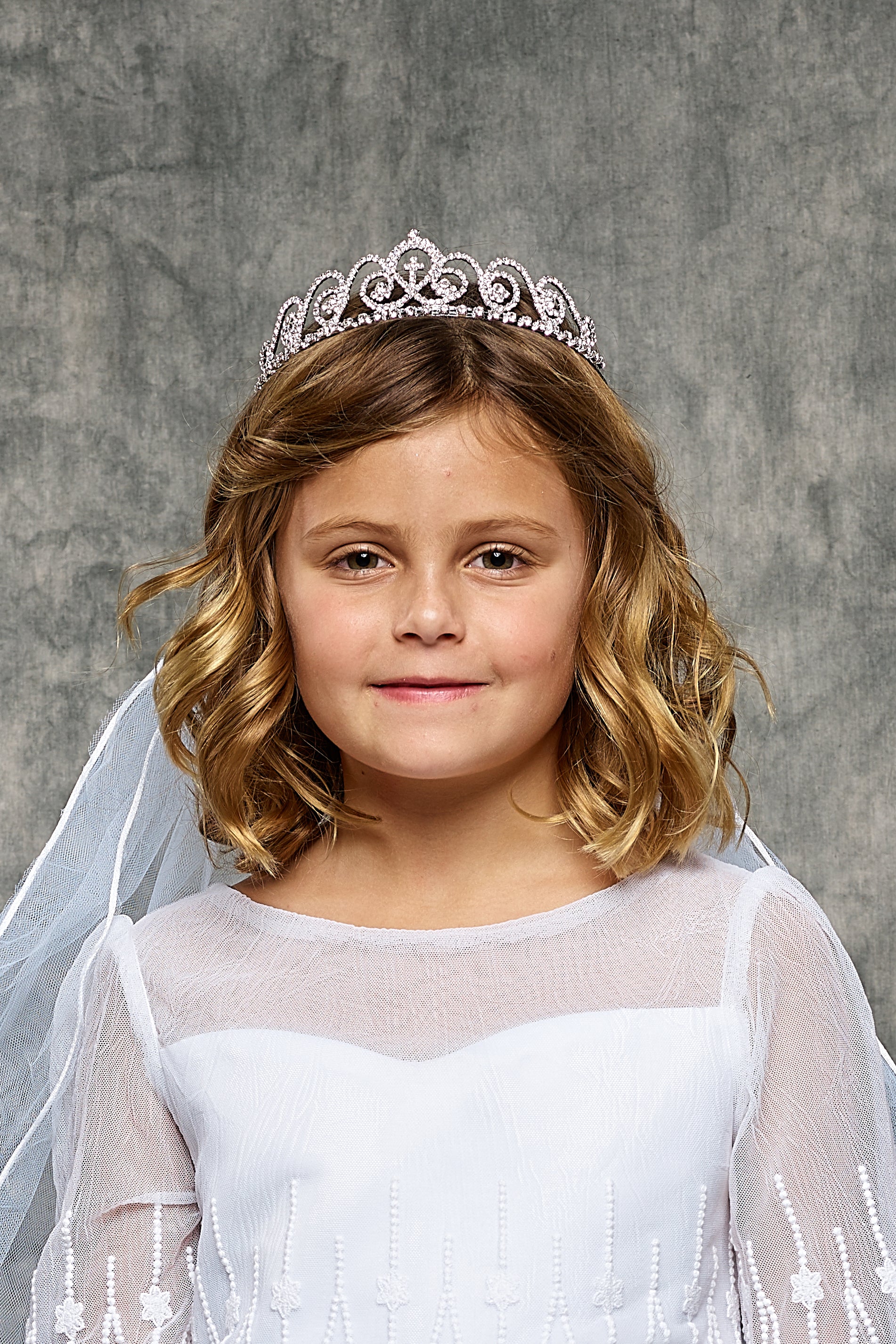 Designed for little princesses, this tiara veil is a charming addition to any special occasion outfit. Crafted from 100% polyester, it ensures durability and comfort for all-day wear. Ideal for communions, this tiara is a testament to our commitment to making little girls feel beautiful on their special day.